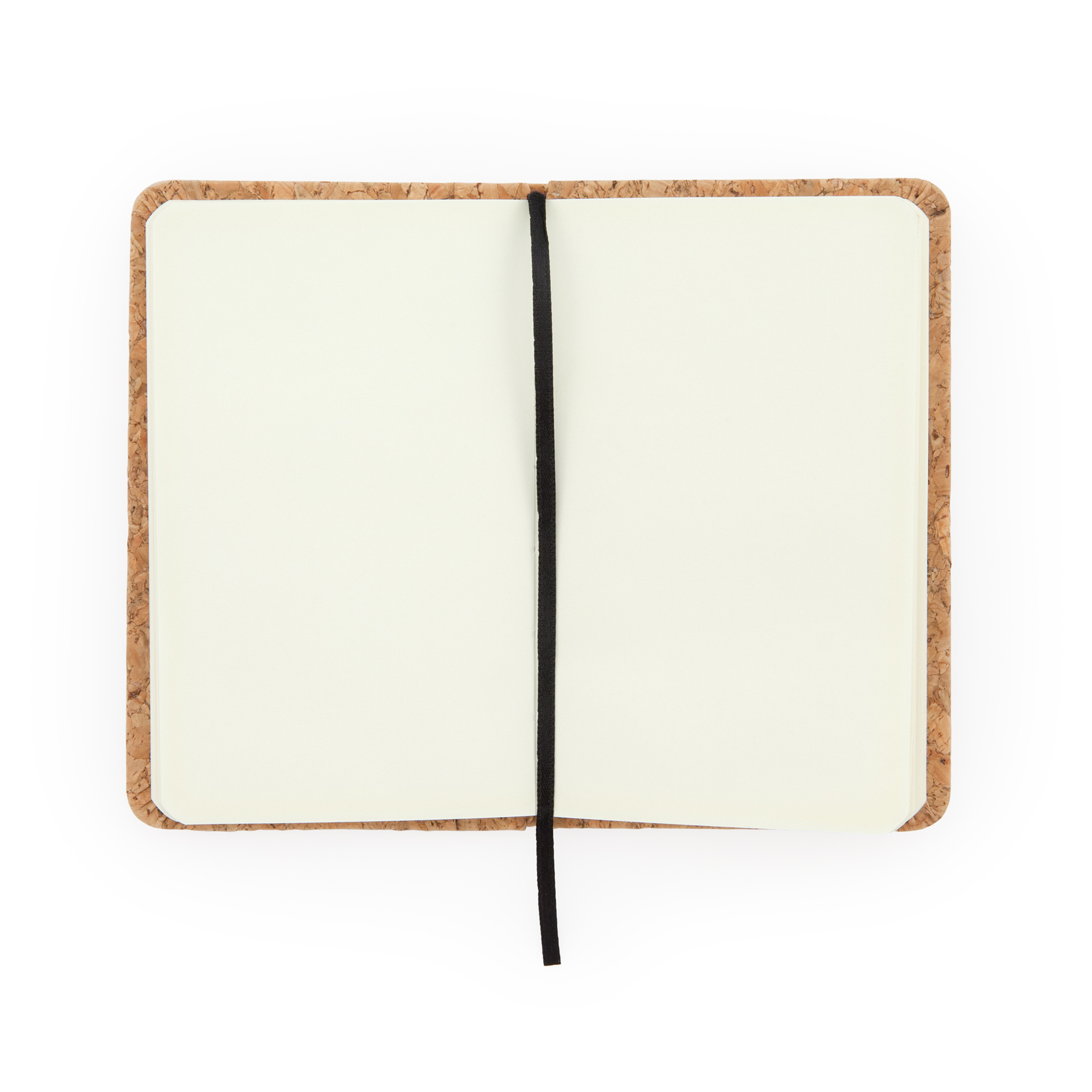 Bloc de notas A6. Tapa rígida de corcho natural. Marcapáginas y banda elástica. 80 hojas lisas.
