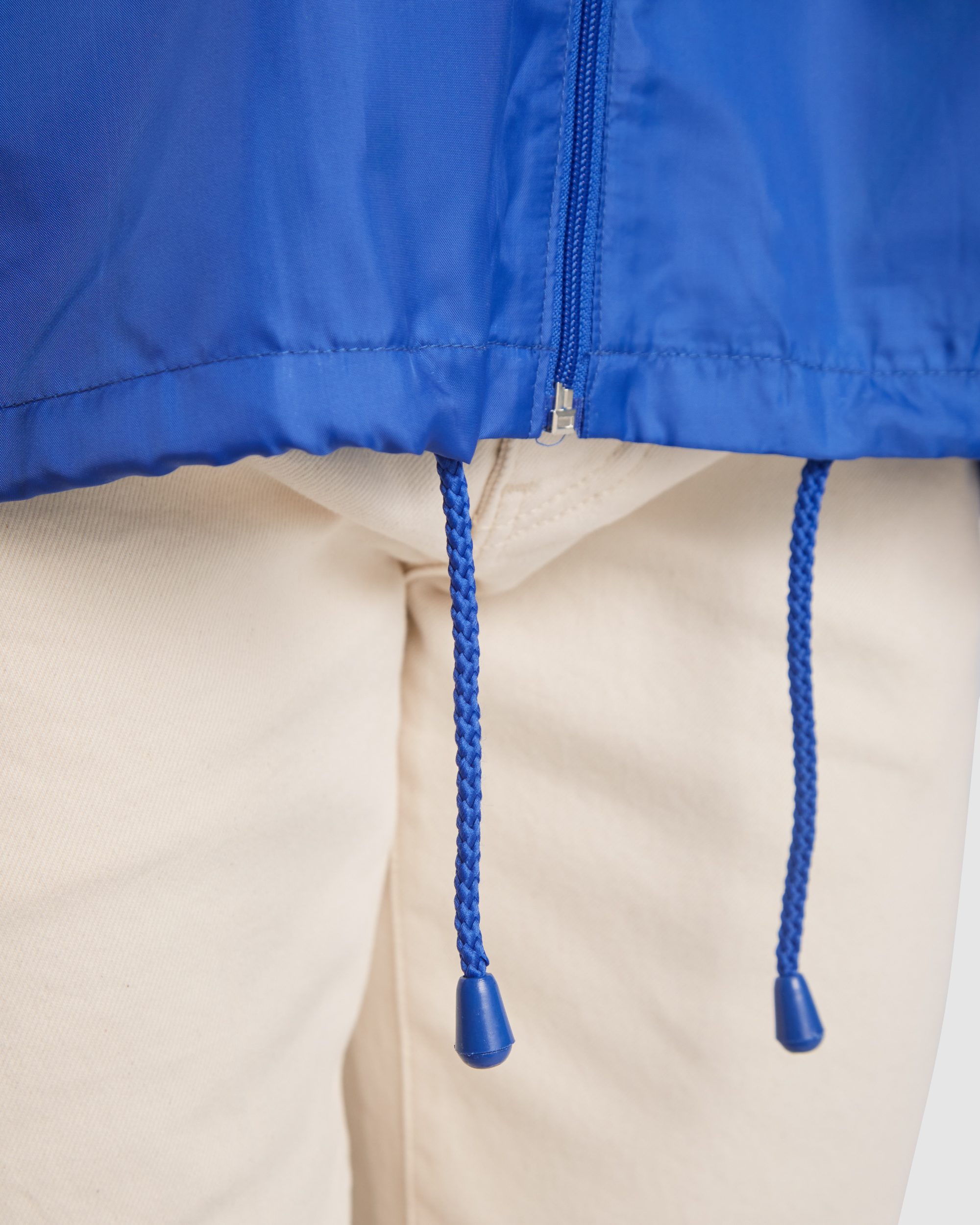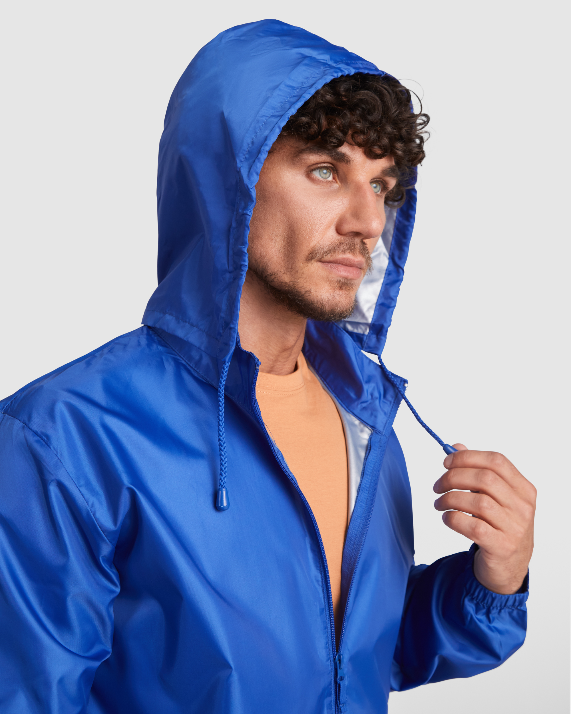 · Cuello alto y capucha extraíble con cordones ajustables.
