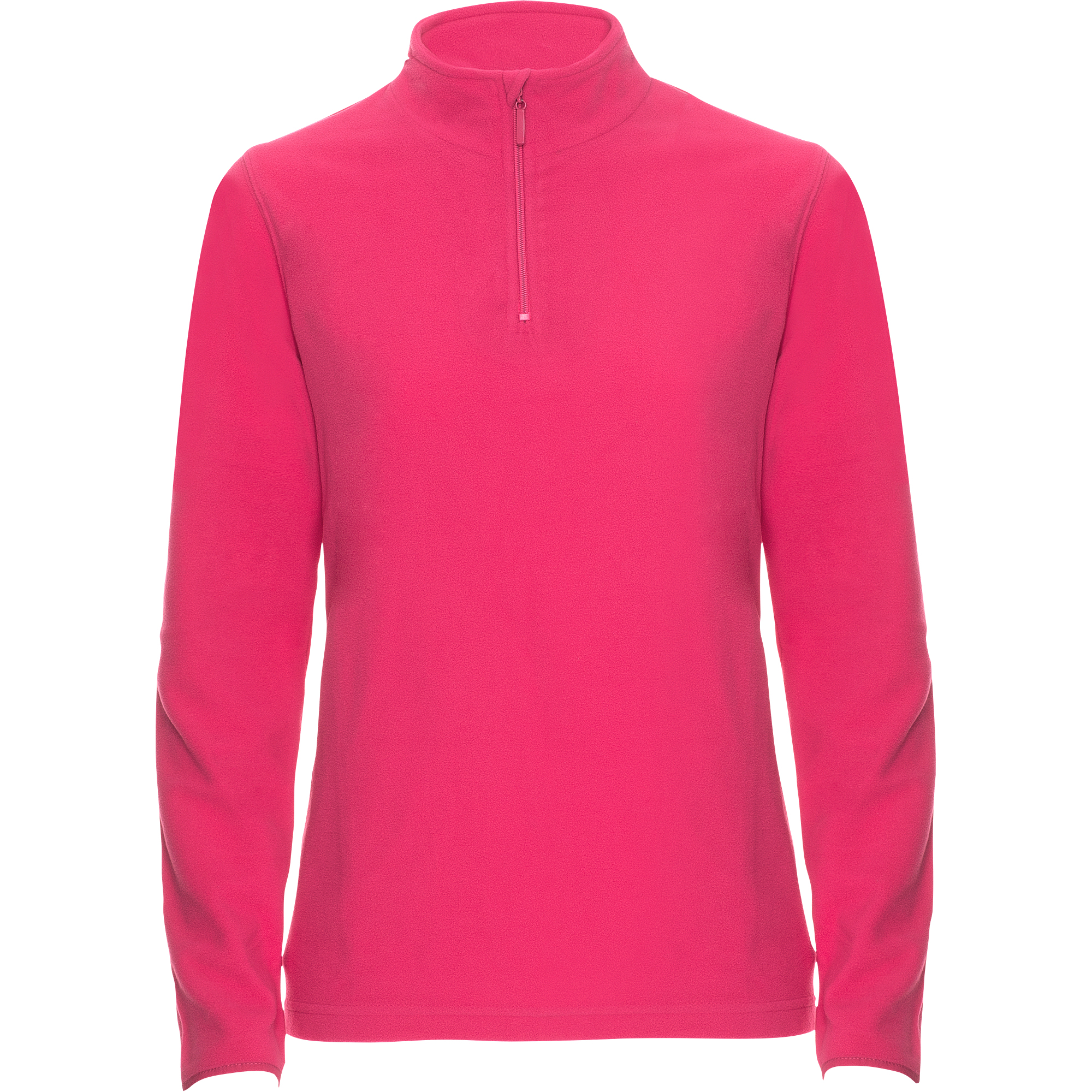 Micropolar con media cremallera en cuello y protector de barbilla. Puños con ribete elástico a tono. Corte entallado.