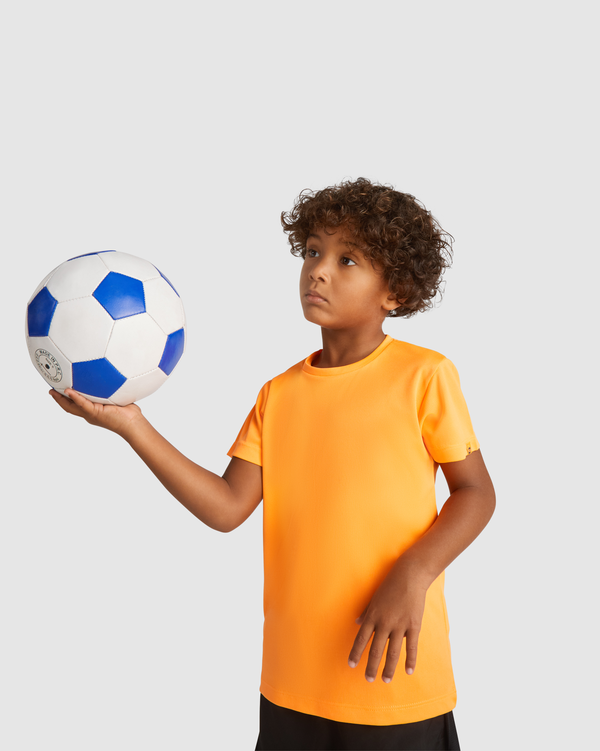 Camiseta técnica de manga corta con tejido de poliéster Reciclado CONTROL DRY. Cuello redondo con cubrecosturas a tono. Etiqueta identificativa con logo ECO en manga. Embolsado en material reciclado.
