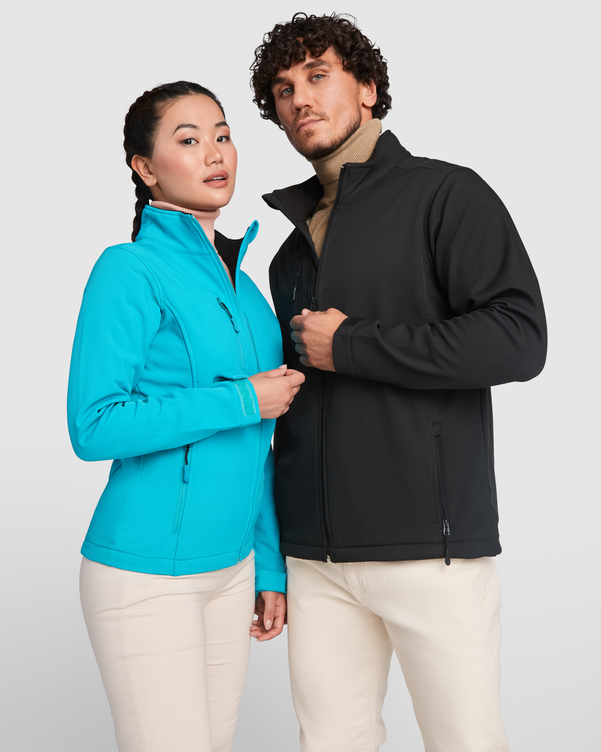 Softshell compuesto de 2 capas con corte entallado. Cremallera invertida a tono, con protector de barbilla y tirador. Forro interior en tejido polar. Cuenta con bolsillo exterior en pecho derecho con cremallera a tono y tirador, y dos bolsillos exteriores con cremallera a tono y tirador. Ajustadores en puño con velcro. Bajo con cordón elástico y topes.