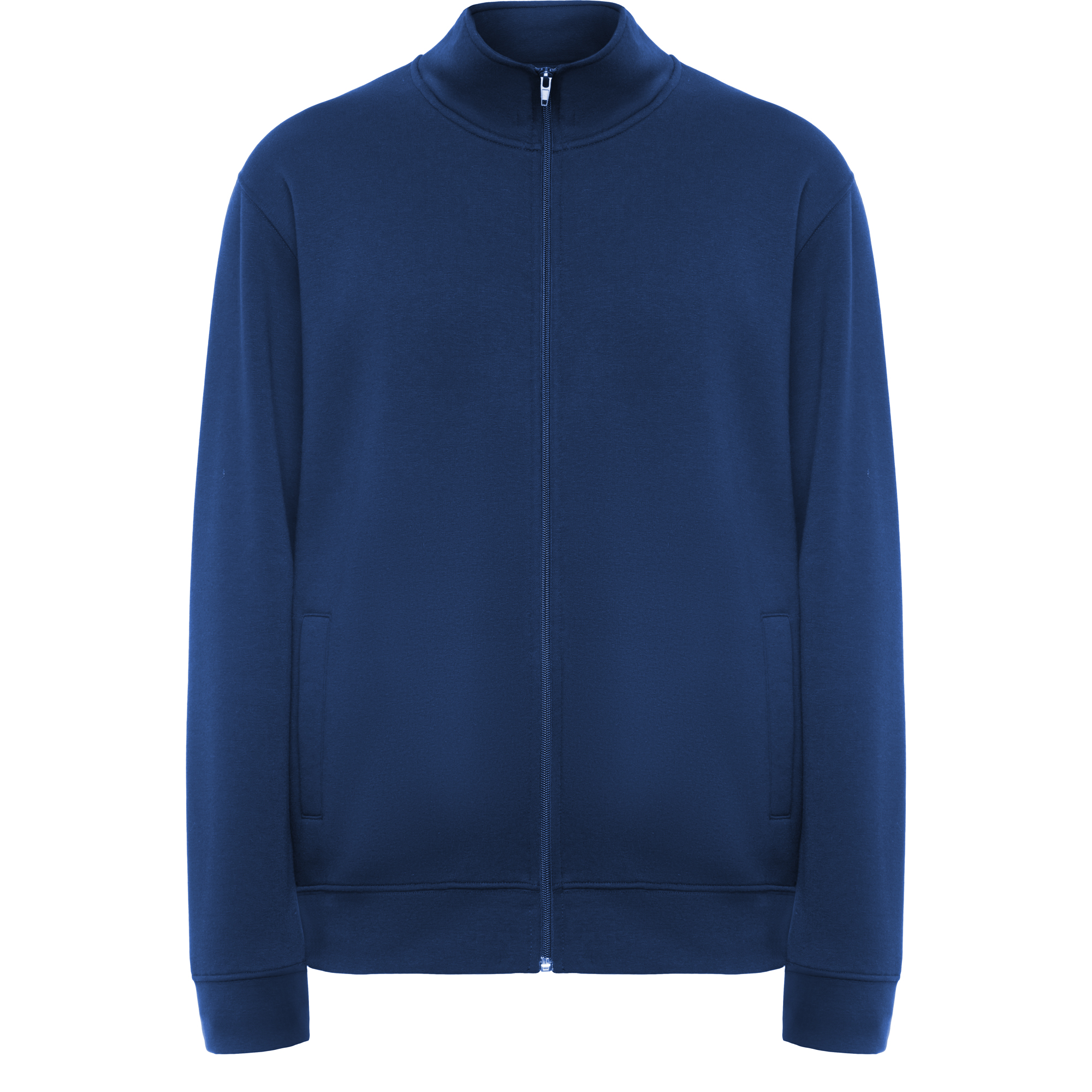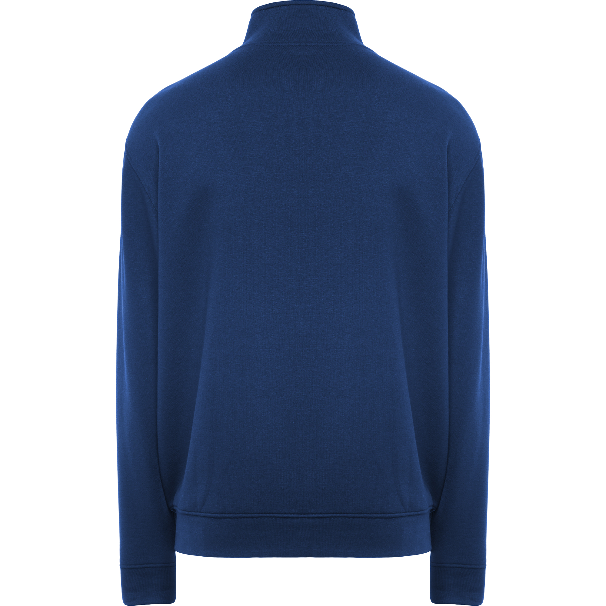 Sudadera de cuello alto con cremallera a tono. Vista interior del cuello en el mismo tono. Cubrecosturas reforzado en el interior del cuello. Punto canalé 1×1 en puños y cintura.