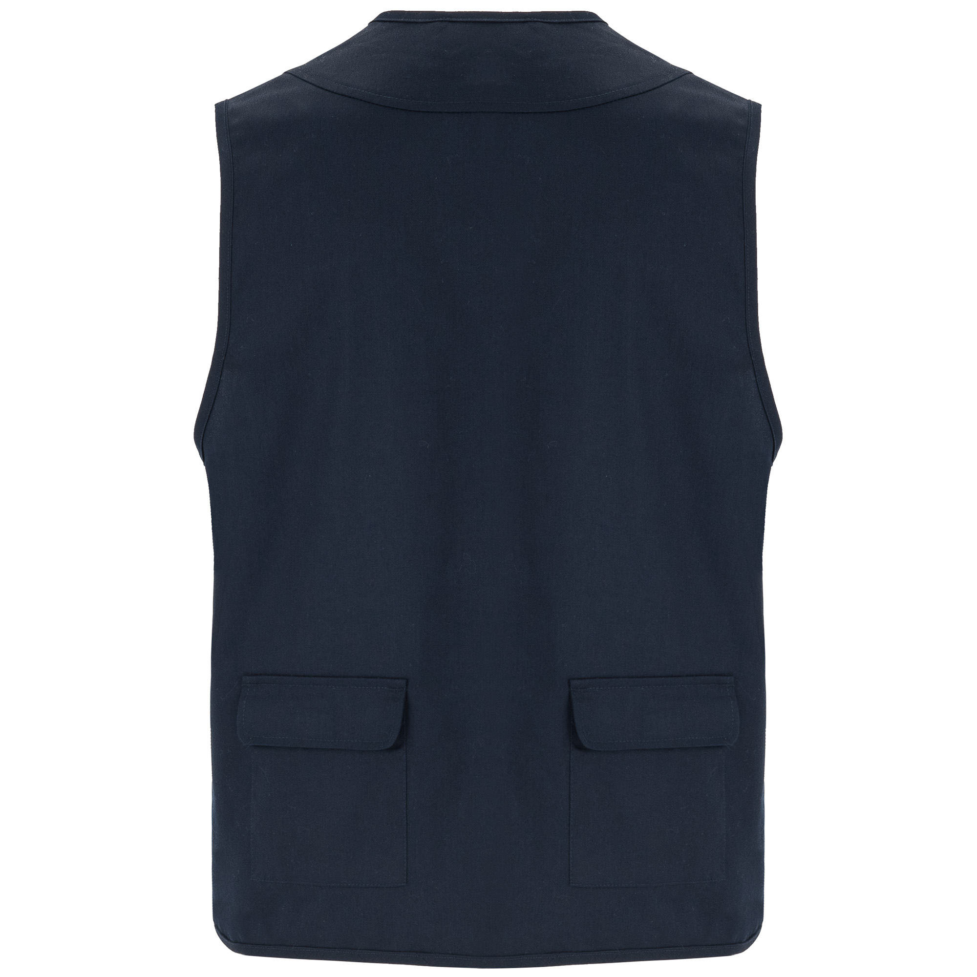 Chaleco laboral multibolsillos con cuello en pico.