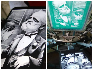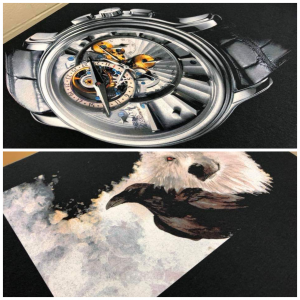 La tecnica consiste en la estampacion de una imagen a color sobre diferentes materiales